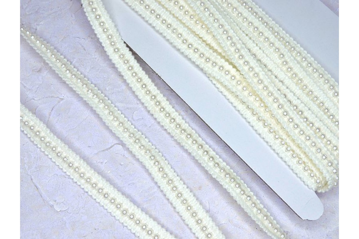 Тесьма декоративная 15 мм с бусинками, цв. айвори - 1 м.