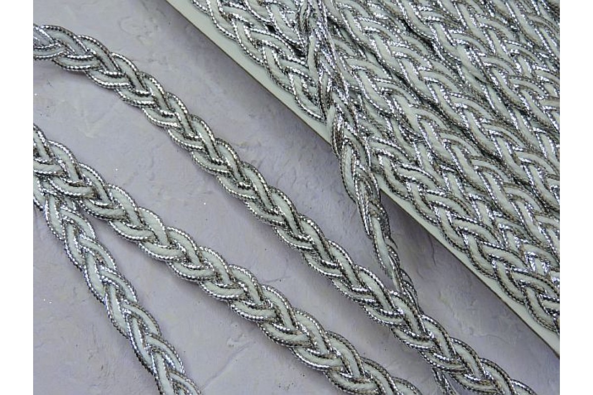 Тесьма косичка 10 мм, цв. серебро - 1 м.