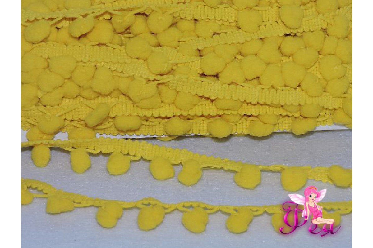 Тесьма с помпонами,размер — 6 мм, помпоны 1 см, лимонный