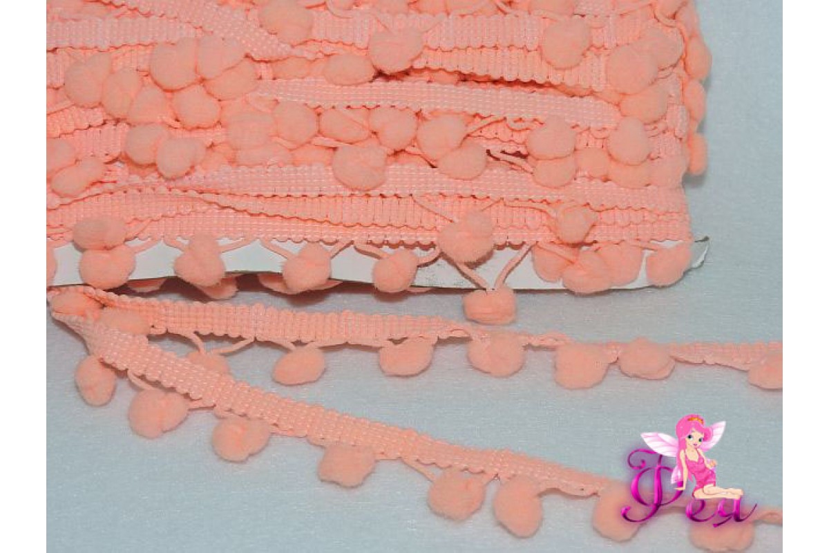 Тесьма с помпонами,размер — 6 мм, помпоны 1 см, персиковый