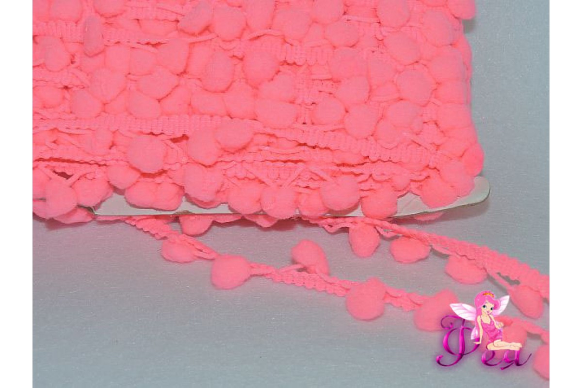 Тесьма с помпонами,размер — 6 мм, помпоны 1 см, розовый