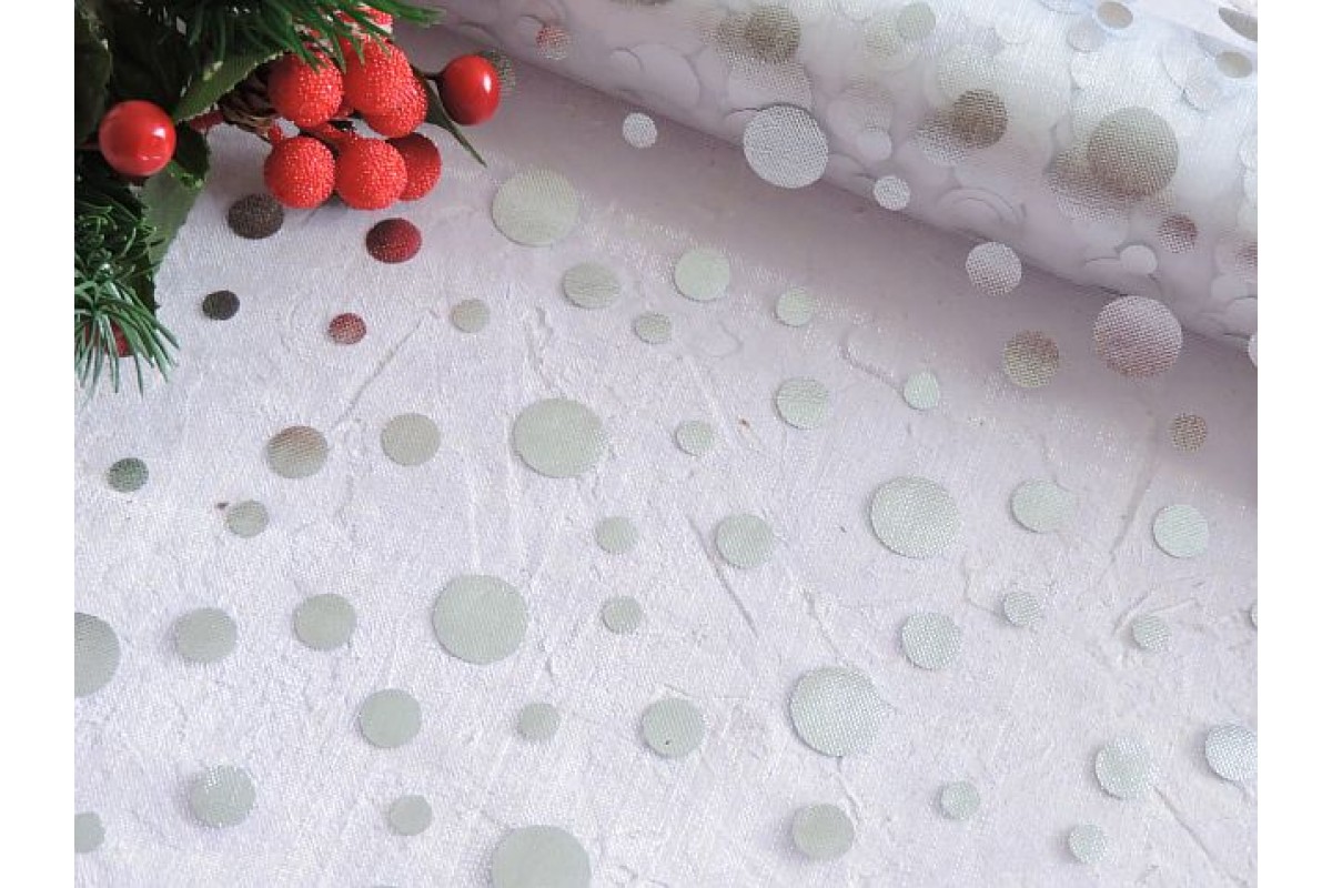 Органза 48*50см "Кружочки", цв. серебряный/белый - 1 отрез., 25-94, Китай, Упаковочные материалы
