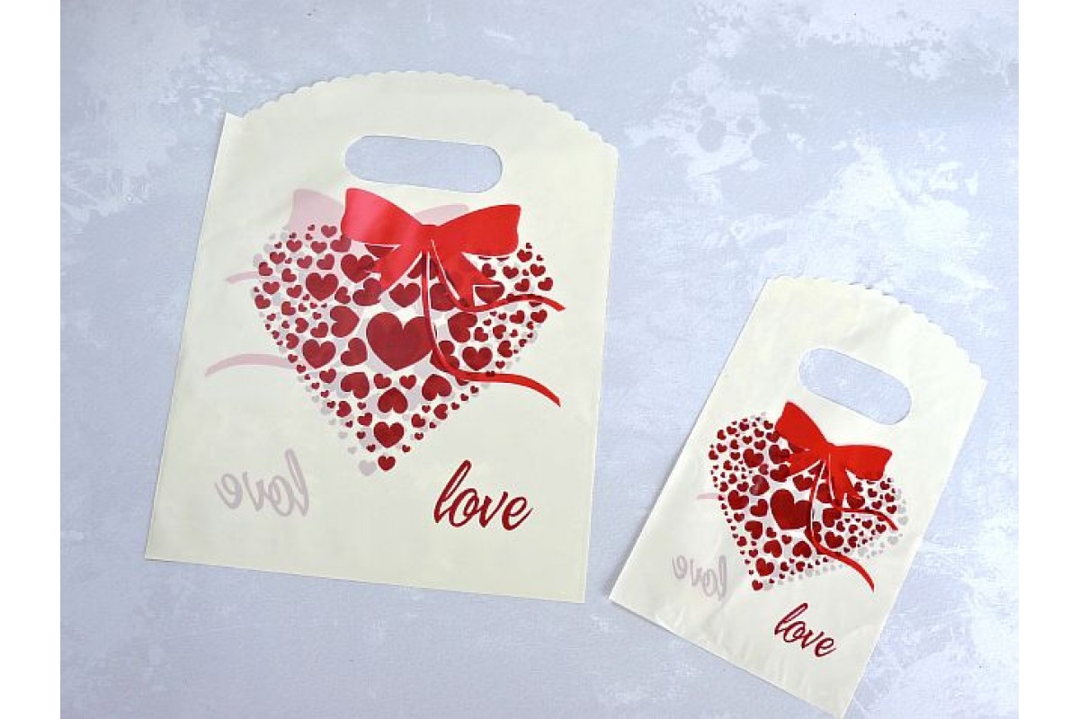 Пакет полиэтиленовый с рисунком "Сердечко с бантиком" - 1 шт.