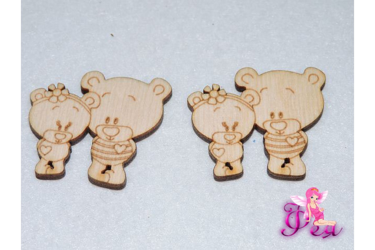 Декоративные фигурки из фанеры "Влюбленная парочка", 3 см (Мишки), 451-148, Россия, Элементы декора