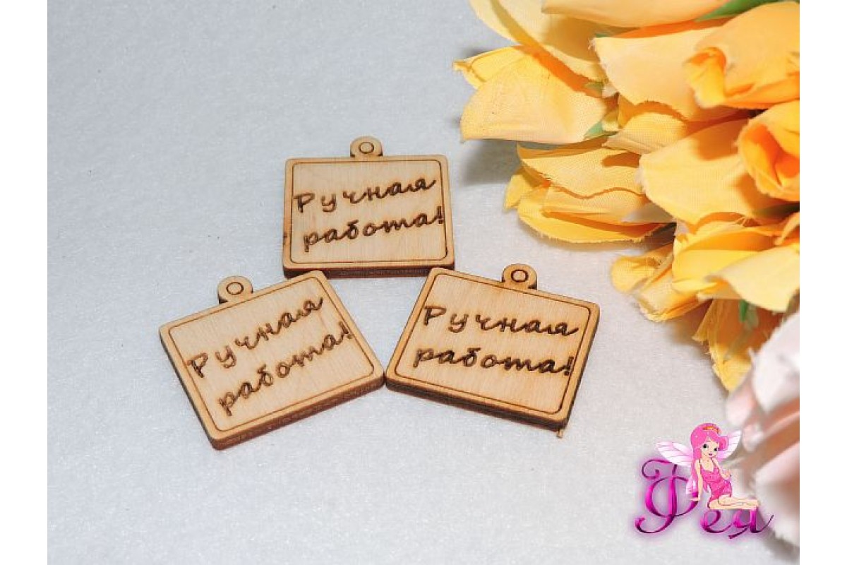 Заготовка из фанеры бирка квадратная 3 см «Ручная работа»